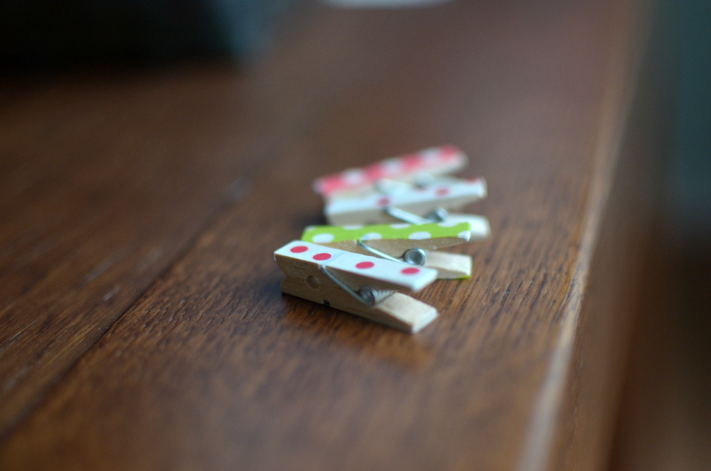 Using clothes pins covered with these decorative tapes are a nice way to hold little note cards and name cards on gifts.
