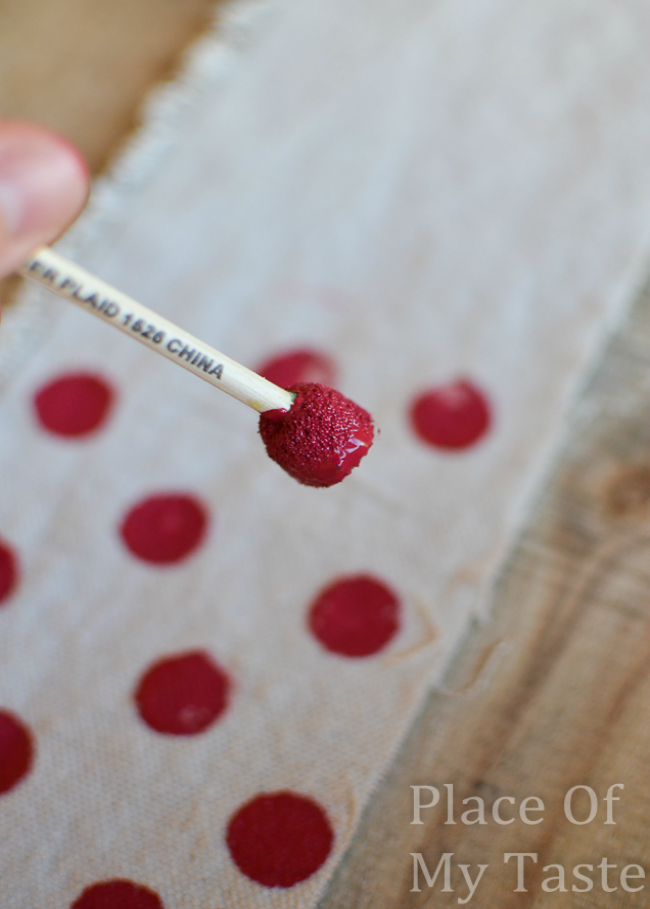 so I painted a little piece of drop cloth with the same color paint as I used for painting on the dots.